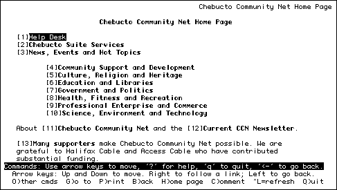 The Chebucto Community Net's homepage is a good example of text based functionality.